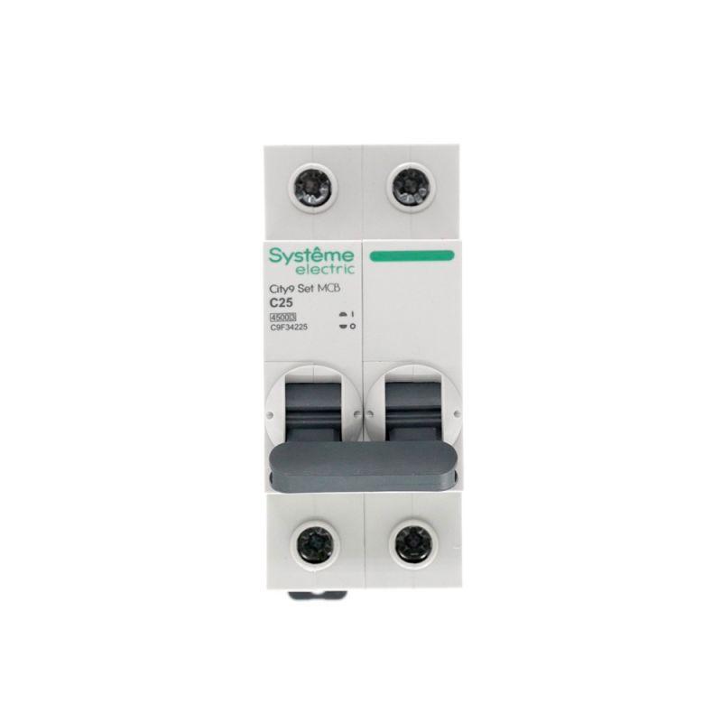 Автоматический выключатель Systeme Electric City9 Set C9F34225 — это надежный двухполюсный модульный аппарат для защиты электрических цепей от перегрузок и коротких замыканий. С номинальным током 25А и характеристикой срабатывания «C» он обеспечивает селективную защиту в бытовых и коммерческих сетях переменного тока 230В.