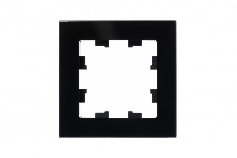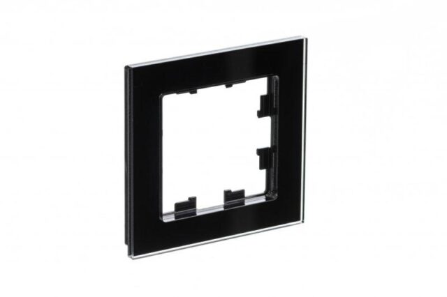 Рамка изготовлена из ударопрочного стекла с глянцевой блестящей поверхностью, что придает ей премиальный вид и облегчает уход. Материал не содержит галогенов, что соответствует современным экологическим стандартам. Компактные размеры (85.4x85.4 мм) и классическая модульная сетка 4x4 обеспечивают удобство и универсальность монтажа.