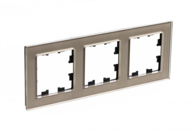 Ключевые преимущества включают ударопрочность стандарта IK05, отсутствие галогенов в составе материала и степень защиты IP20. Изготовленная из блестящего стекла, рамка визуально расширяет пространство, отражая свет, а ее прозрачность и благородный оттенок шампань добавляют интерьеру легкости и современности. Простое крепление «введение фиксатора в паз» облегчает монтаж.