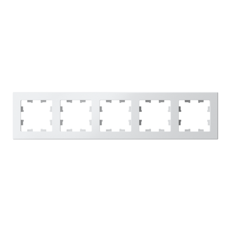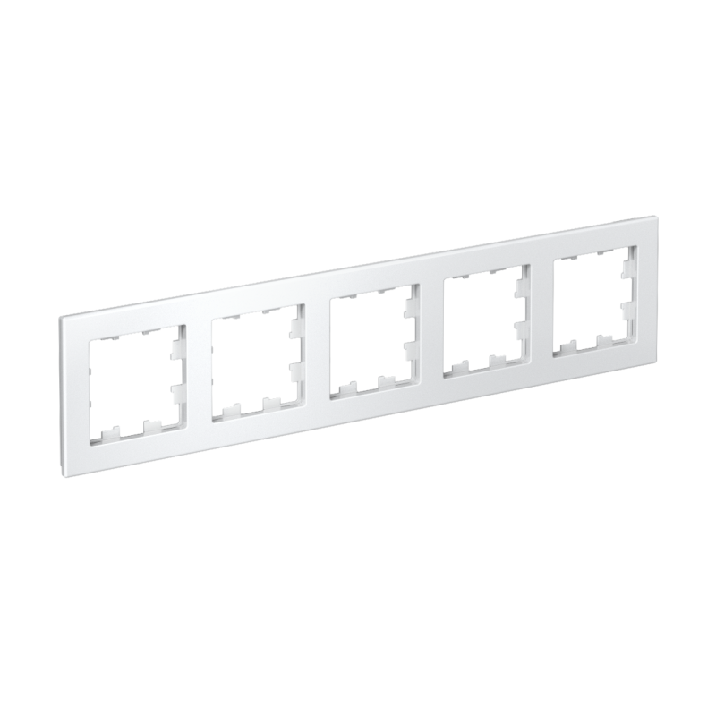 Рамка предназначена для установки пяти стандартных электроустановочных изделий (розеток, выключателей) в один горизонтальный или вертикальный ряд. Она используется для скрытого монтажа, обеспечивая аккуратный и завершённый вид электрофурнитуре, и гармонично интегрируется в любую стеновую отделку.