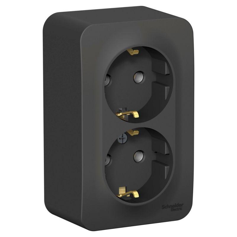Розетка 2-м ОП Blanca 16А IP20 250В с заземл. без защ. шторок с изолир. пластиной антрацит